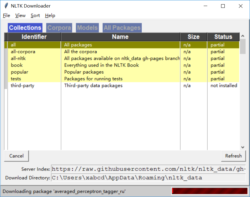 首次在python中执行nltk.download()